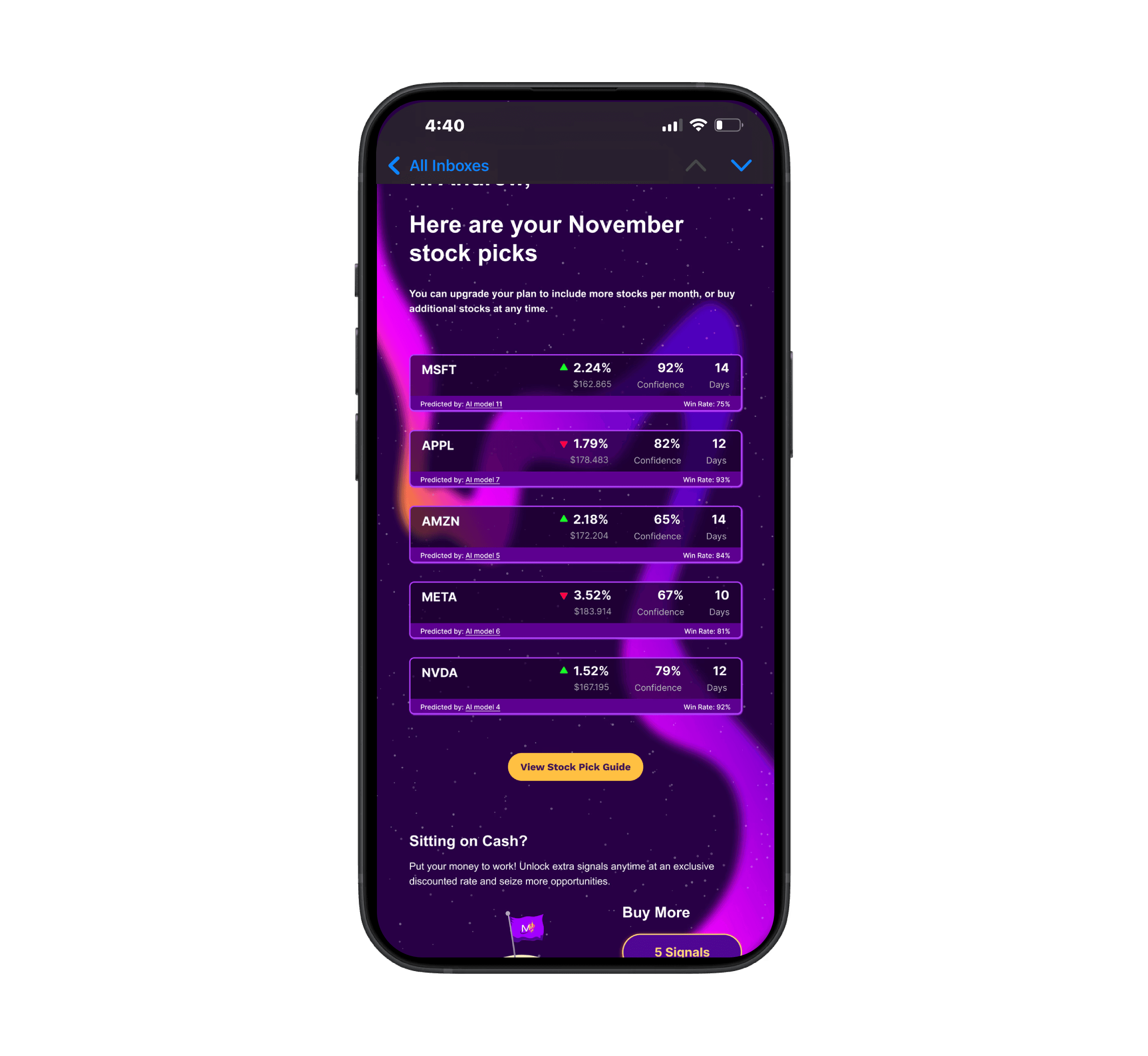 Makana Finance combines cutting-edge artificial intelligence with a clear mission: to make stock market analysis more precise, understandable, and accessible for traders of all experience levels. At its core, Makana provides AI-generated trading signals, actionable stock picks backed by rigorous data analysis and predictive models rather than hype or noise. Each signal includes essential details like expected duration, confidence levels, and historical win-rate statistics, helping traders make informed choices with clarity and confidence.
